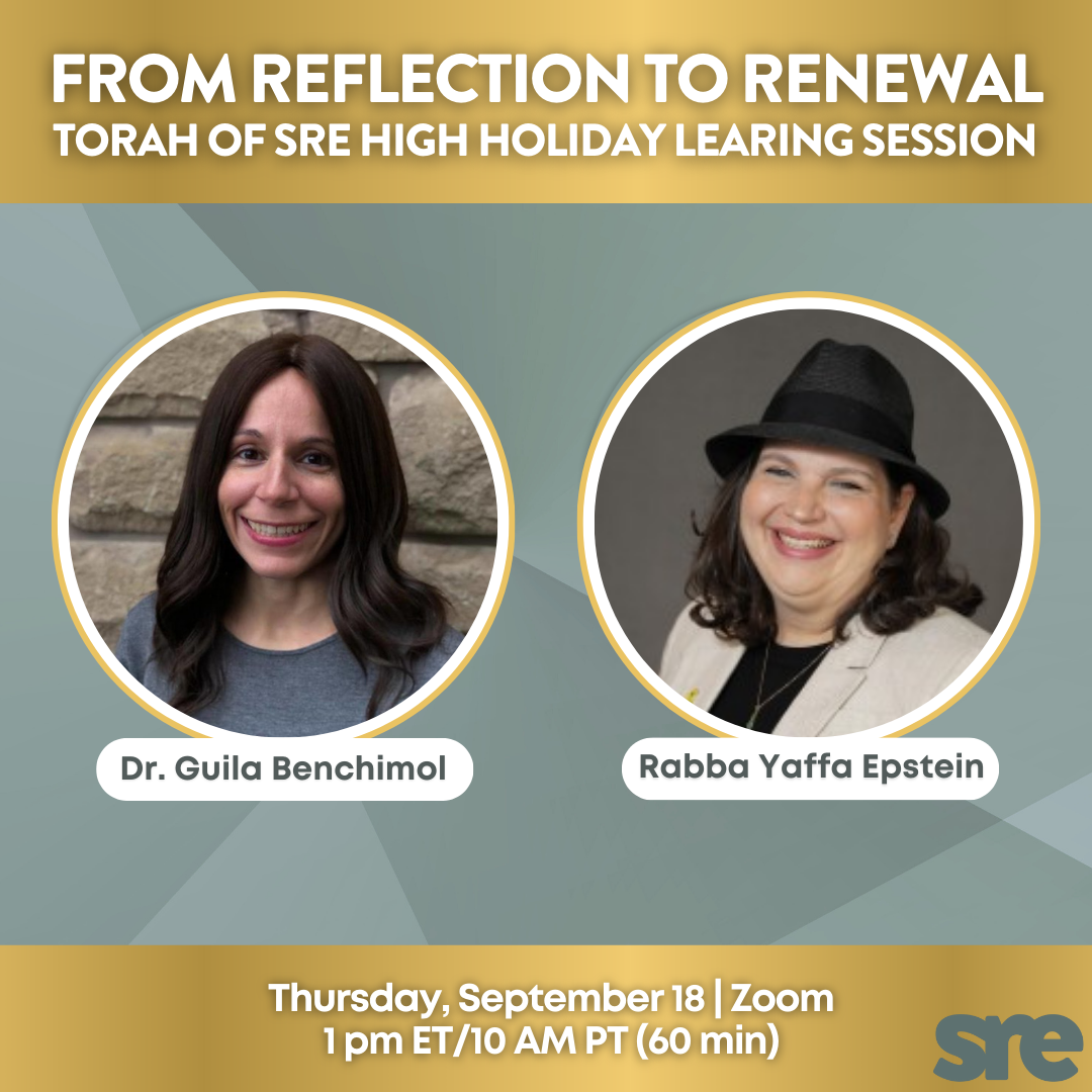 As we enter the season of reflection and renewal, join Dr. Guila Benchimol and Rabba Yaffa Epstein for an interactive learning session on Thursday, September 18 grounded in the newly created Torah of SRE sourcesheet.